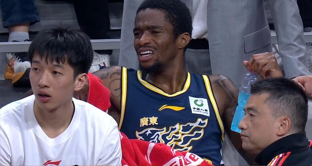 杜锋立马叫出暂停,撤下萨林杰,期间镜头给到了萨林杰一个特写,萨林杰表情痛苦,走路一瘸一拐的独自走回更衣室。